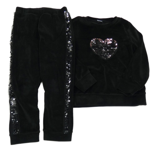 2set - Černá plyšová mikina se srdíčkem z flitrů + tepláky Little kids