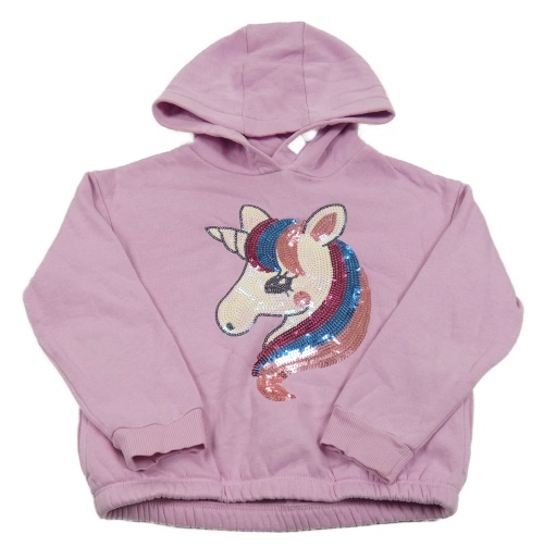 Růžová oversize mikina s jednorožcem z flitrů a kapucí C&A