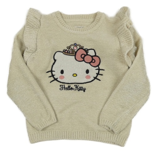 Béžový žinylkový svetr s Kitty a volánky C&A