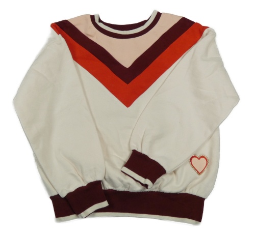 Smetanovo-vínovo-červená mikina s pruhy a srdíčkem C&A