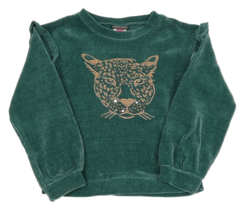 Zelená žinylková mikina s leopardem a volánky