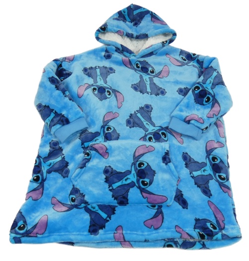 Modrá chlupatá zateplená oversize mikina se Stitchem a kapucí Disney