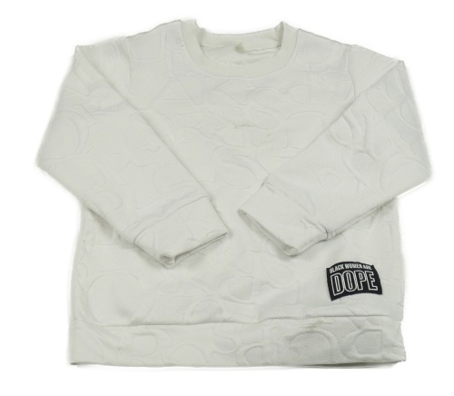Bílá mikina s písmenky a nášivkou