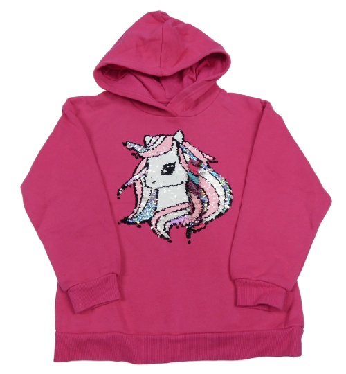 Tmavorůžová mikina s jednorožcem z překlápěcích flitrů a kapucí