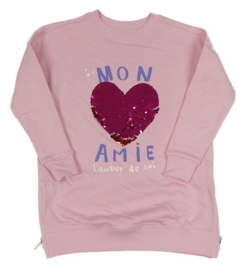 Růžová dlouhá mikina se srdcem z překlápěcích flitrů George