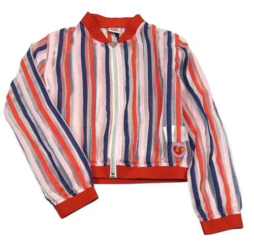 Růžovo-červeno-tmavomodrá pruhovaná průhledná propínací mikina TucTuc