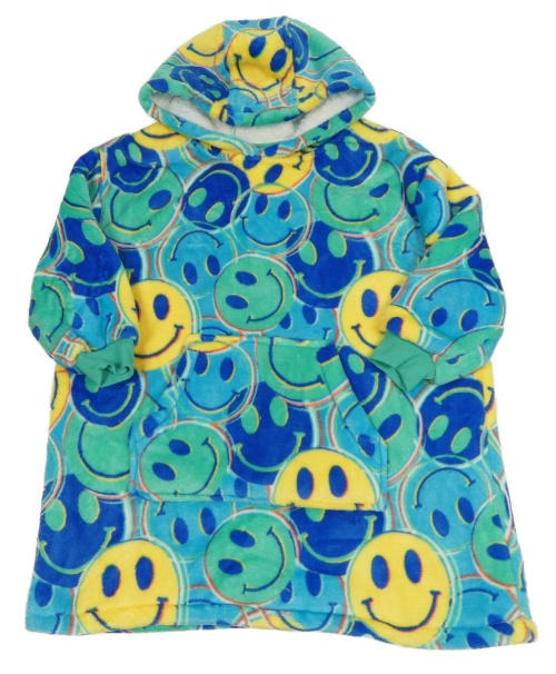 • Modro-zelená chlupatá zateplená oversize mikina se smajlíky a kapucí Dunnes