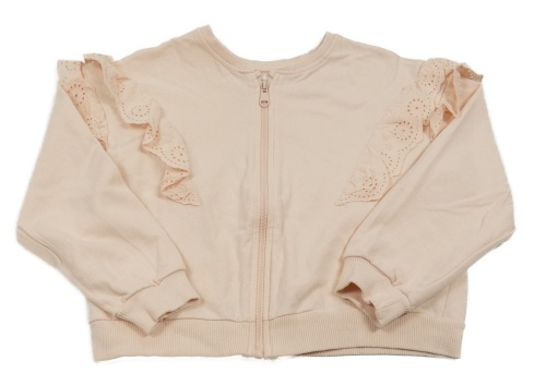 Světlerůžová propínací mikina s volánky s madeirou Sinsay