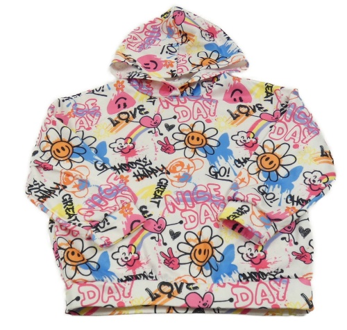 Bílo-barevná mikina s nápisy a květy a kapucí Shein