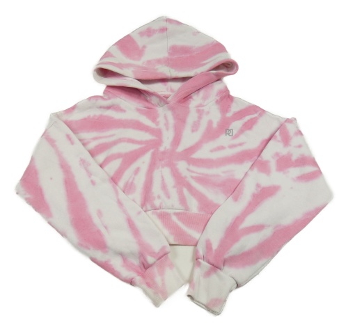 Bílo-růžová batikovaná crop mikina s nápisem a kapucí
