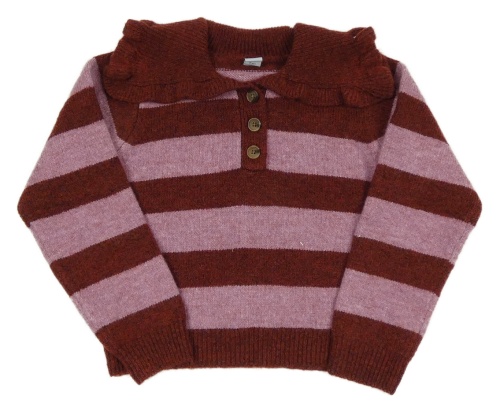 Růžovo-vínový pruhovaný svetr s límečkem Tu