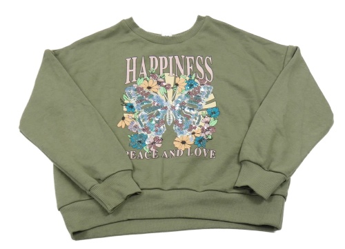 Khaki mikina s motýlkem s flitry a nápisy Tu