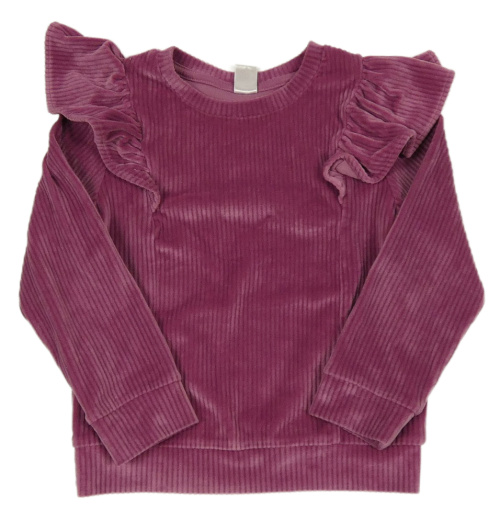 Růžová sametový žebrovaná mikina s volánky