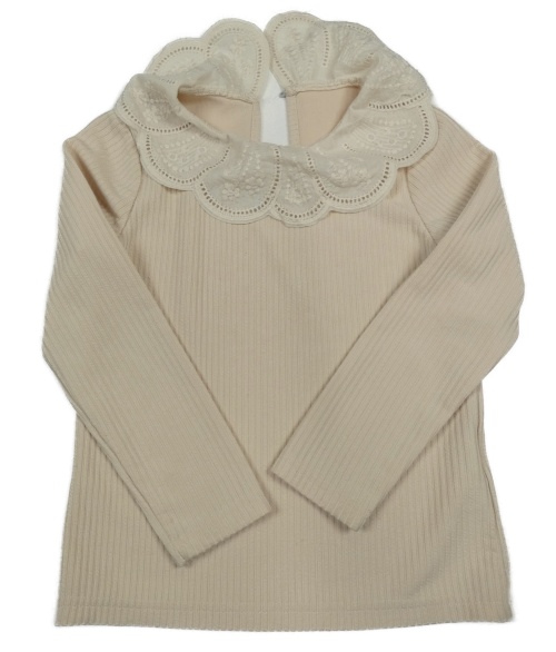 Světlebéžové žebrované úpletové mikinotriko s volánkem s výšivkou a madeirou SHEIN