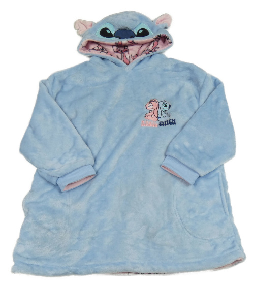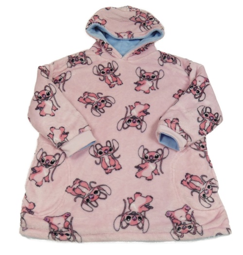 Světlerůžová/světlemodrá plyšová oboustranná oversize mikina s kapucí - Stitch