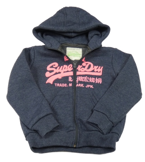 Tmavomodrá propínací zateplená mikina s nápisy a kapucí Superdry