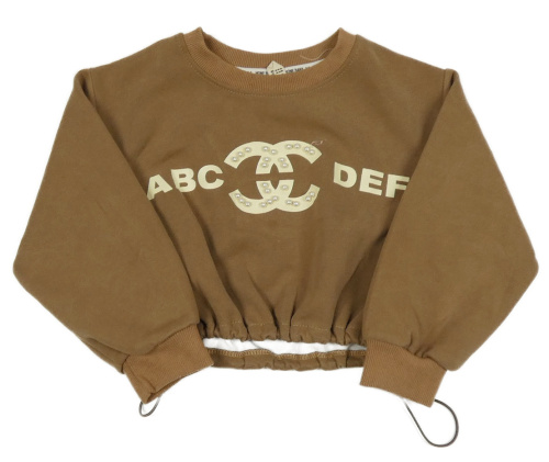 Hnědá crop mikina s písmeny a perlami