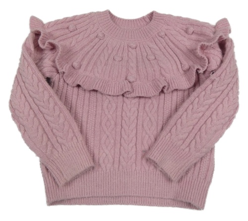 Růžový vzorovaný svetr s bambulkami a volánky Matalan