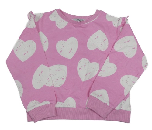 Růžovo-bílá lehká mikina s volánky a srdíčky