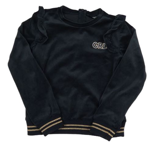 Černošedá plyšová mikina s písmenky a volánky a zlatými pruhy EUROPE KIDS