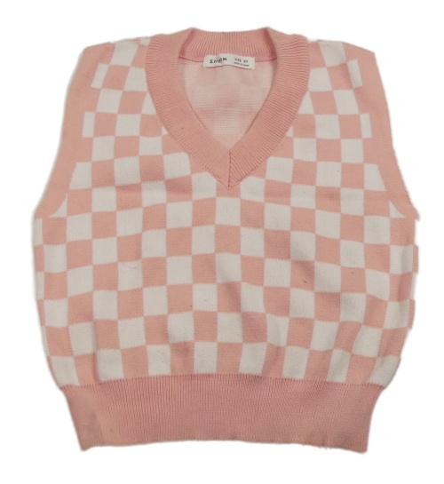 Světlerůžovo-bílá kostkovaná svetrová vesta Shein