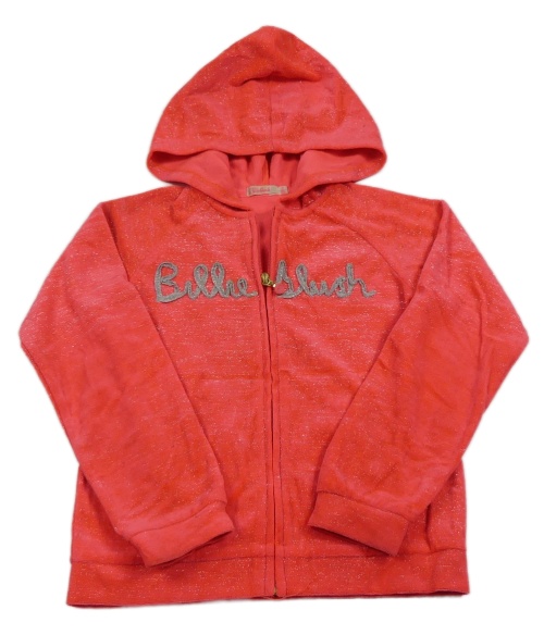Neonově růžovo-stříbrná sametová propínací mikina s nápisem a kapucí Billieblush