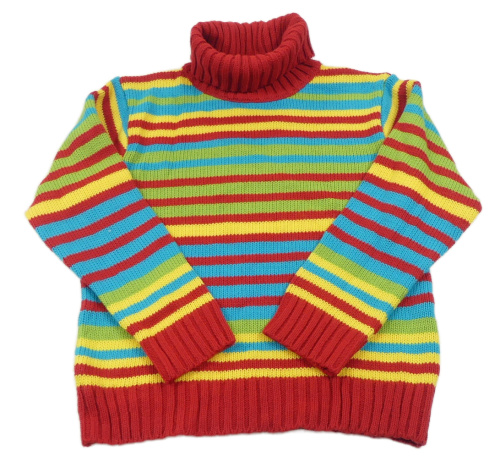Modro-červeno-žlutý pruhovaný svetrový rolák