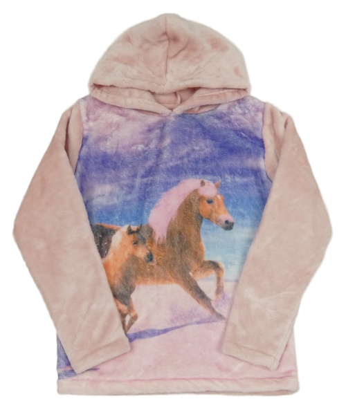 Nové - Růžovo-fialová plyšová mikina s koníky a kapucí Topolino
