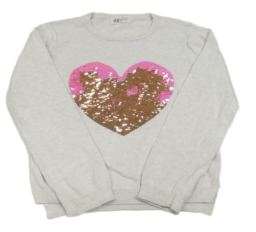 Smetanový lehký svetr se srdcem z flitrů H&M