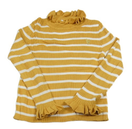 Hořčicovo-bílý pruhovaný žebrovaný svetr s volánkem