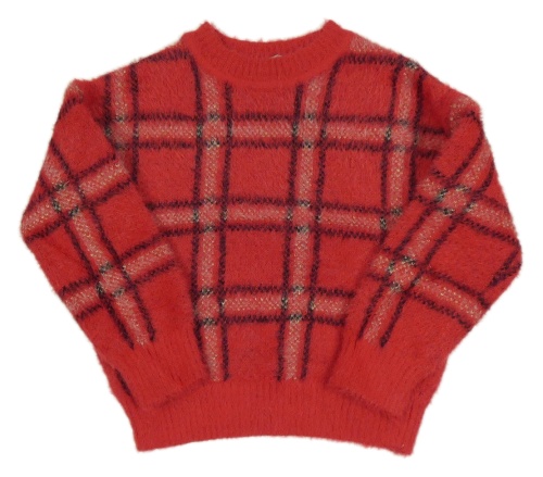 Červeno-černo-bílý kostkovaný chlupatý svetr George