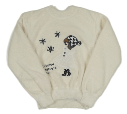 Smetanový chlupatý zateplený svetr s holčičkou