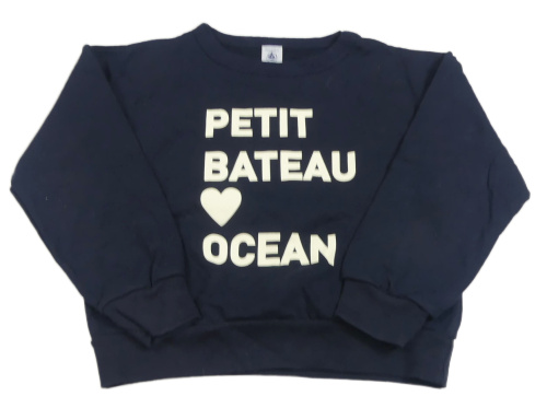 Tmavomodrá mikina s nápisem a srdcem Petit Bateau