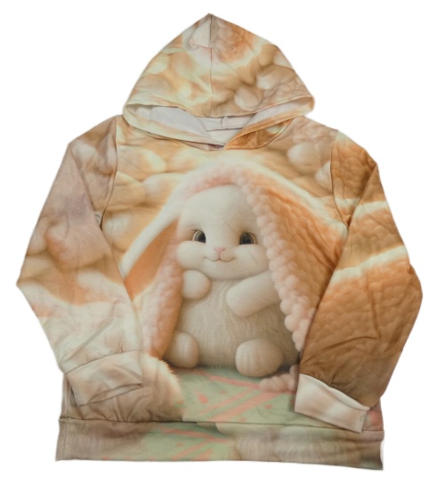 Oranžovo-růžová mikina s králíčkem a kapucí
