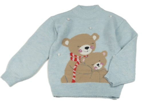 Světlemodrý melírovaný svetrový rolák s medvídky s flitry PRIMARK