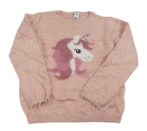 Světlerůžový chlupatý svetr s jednorožcem Dopodopo