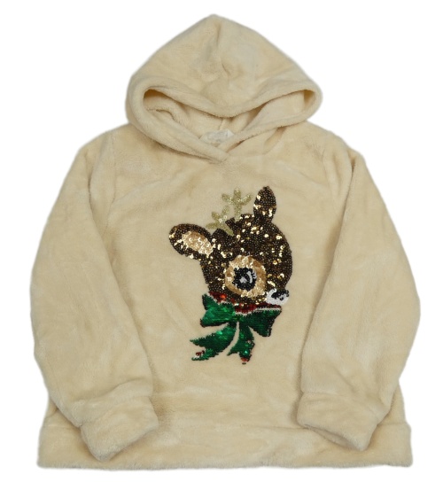 Béžová kožešinová mikina se srnkou z flitrů a kapucí H&M