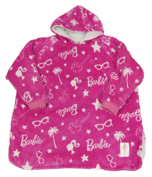Růžová plyšová zateplená oversize mikina s Barbie a kapucí