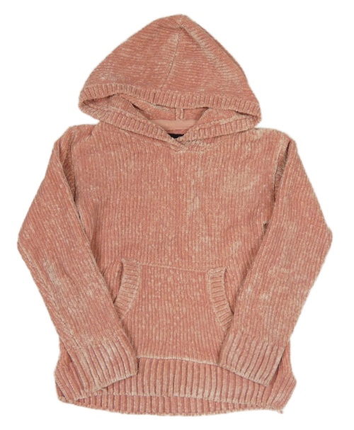 Broskvový melírovaný žinylkový svetr s kapsou a kapucí C&A