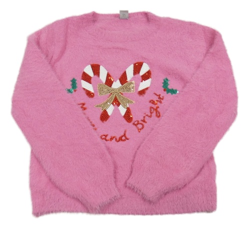 Růžový chlupatý svetr s vánočním obrázkem Tu