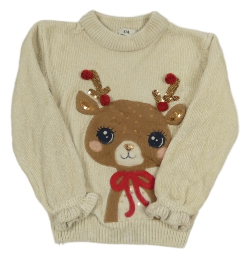 Smetanový melírovaný žinylkový svetr se zvířátkem s flitry C&A