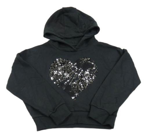Tmavošedá oversize crop mikina se srdíčkem z flitrů a kapucí F&F