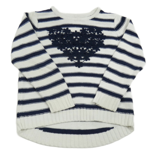Bílo-tmavomodrý pruhovaný svetr s kytičkami Nutmeg