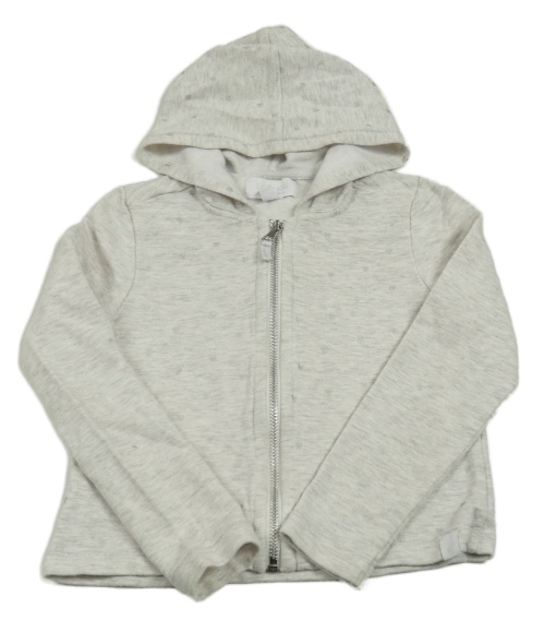 Světlešedá melírovaná propínací crop mikina se srdíčky a kapucí