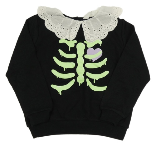 Černá mikina s kostrou a límcem s madeirou H&M