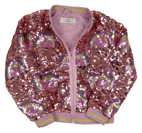 Starorůžová flitrová podšitá propínací mikina s duhami H&M