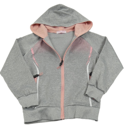 Šedo-růžová sportovní propínací mikina s kapucí