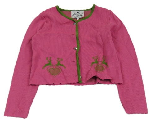 Růžovo-zelený propínací crop svetr s jeleny a srdíčky