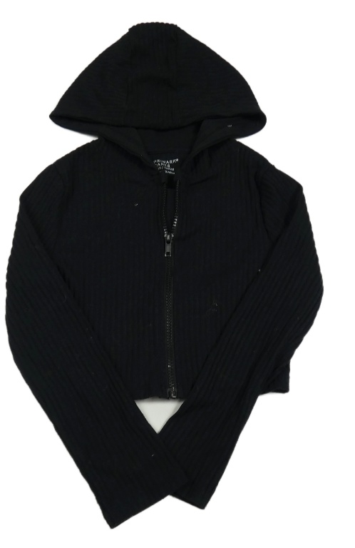 Černá žebrovaná propínací crop mikina s kapucí Primark