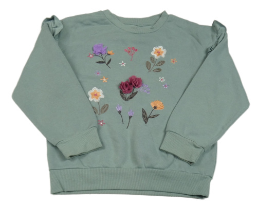 Zelenošedá mikina s květy a volánky Primark